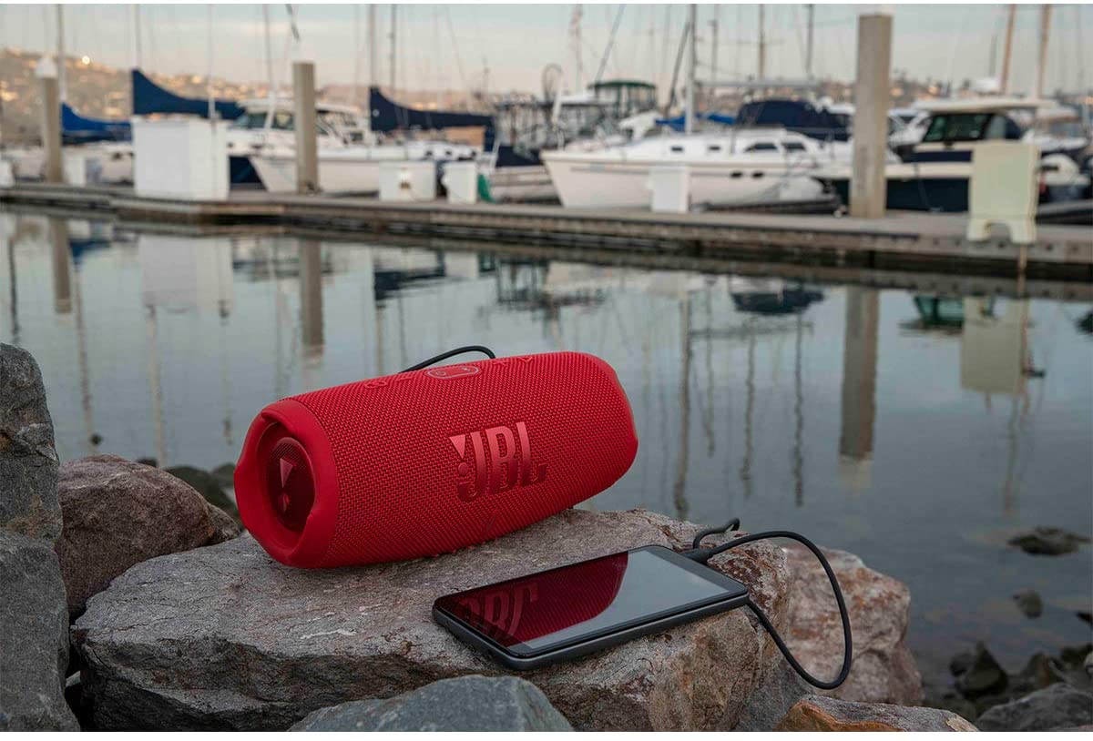 اسپیکر پرتابل و بلوتوثی JBL Charge 5 نسل جدید اسپیکرهای سری شارژ از برند محبوب جی بی ال است که دارای طراحی و عملکرد متفاوتی می باشد. این اسپیکر قابلحمل با درایورهای بهبودیافته و سختافزار بروزشده، تجربهی صوتی متفاوتی را به شما ارائه می دهد. همچنین طراحی ظاهری زیبا و چشمگیر آن همراه با بدنه ضدآب و مقاوم، شما را با سطح جدیدی از سیستمهای صوتی پرتابل آشنا میکند.